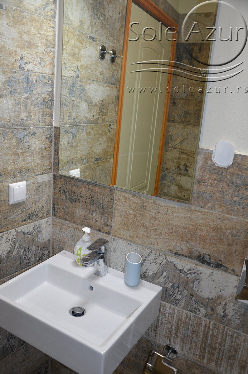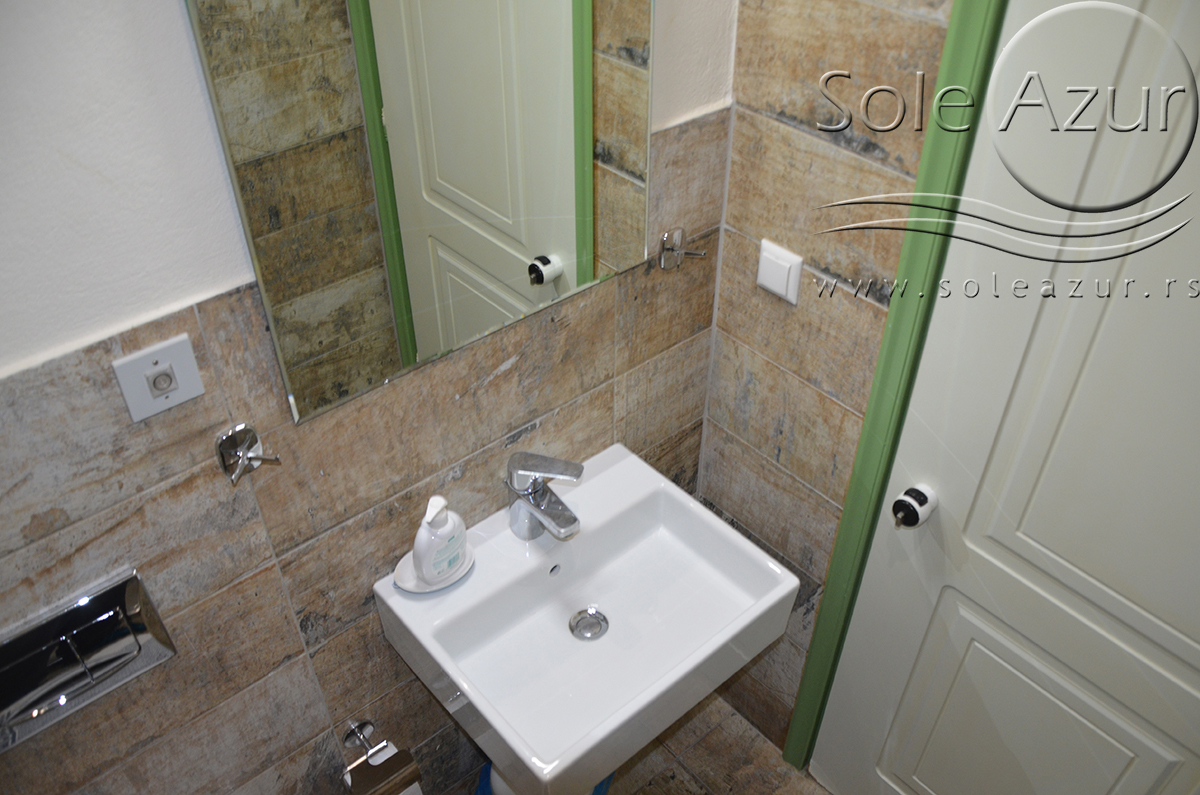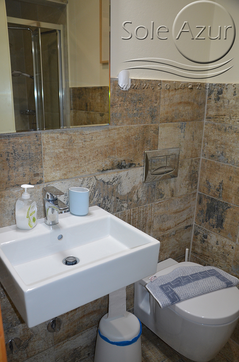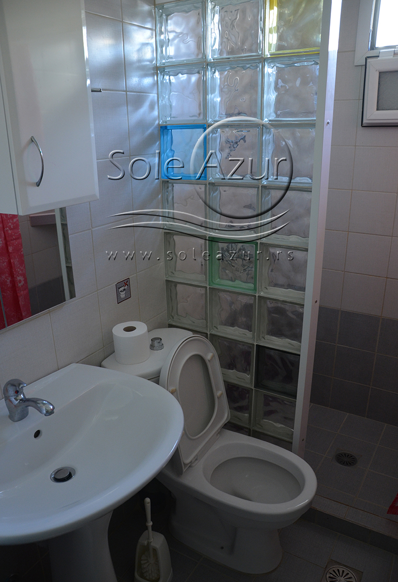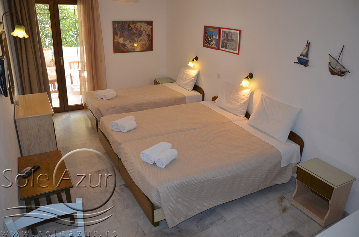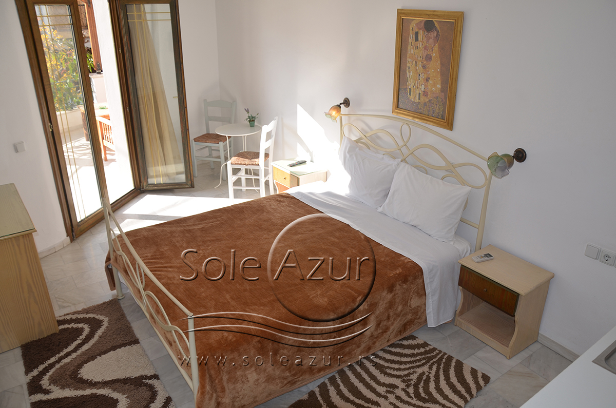 DVOKREVETNI STUDIJI: Dvokrevetni studiji u svom sastavu poseduju ili francuski ležaj dimenzija 190x155cm ili dva singl standardna ležaja dimenzija 190x90cm, dva noćna stočića, stočić sa ogledalom, stočić za prtljag, TV, klima uređaj, orman, SEF (BESPLATNO korišćenje), WI-FI internet konekcija (BESPLATNO korišćenje). Kuhinja se sastoji od ugradnog šporeta sa dve ringle, frižidera sa malom komorom za zamrzavanje, ketlera za grejanje vode, aspiratora, posuđa za dve osobe i stolom za ručavanje sa dve stolice. Kupatila su potpuno renovirana i u svom sastavu poseduju Tuš kabinu, fen za kosu, jedan mali i jedan veliki peškir po osobi.
