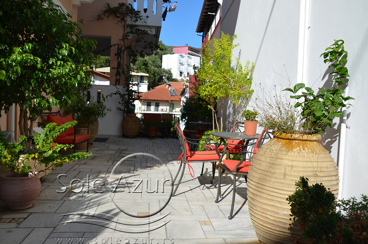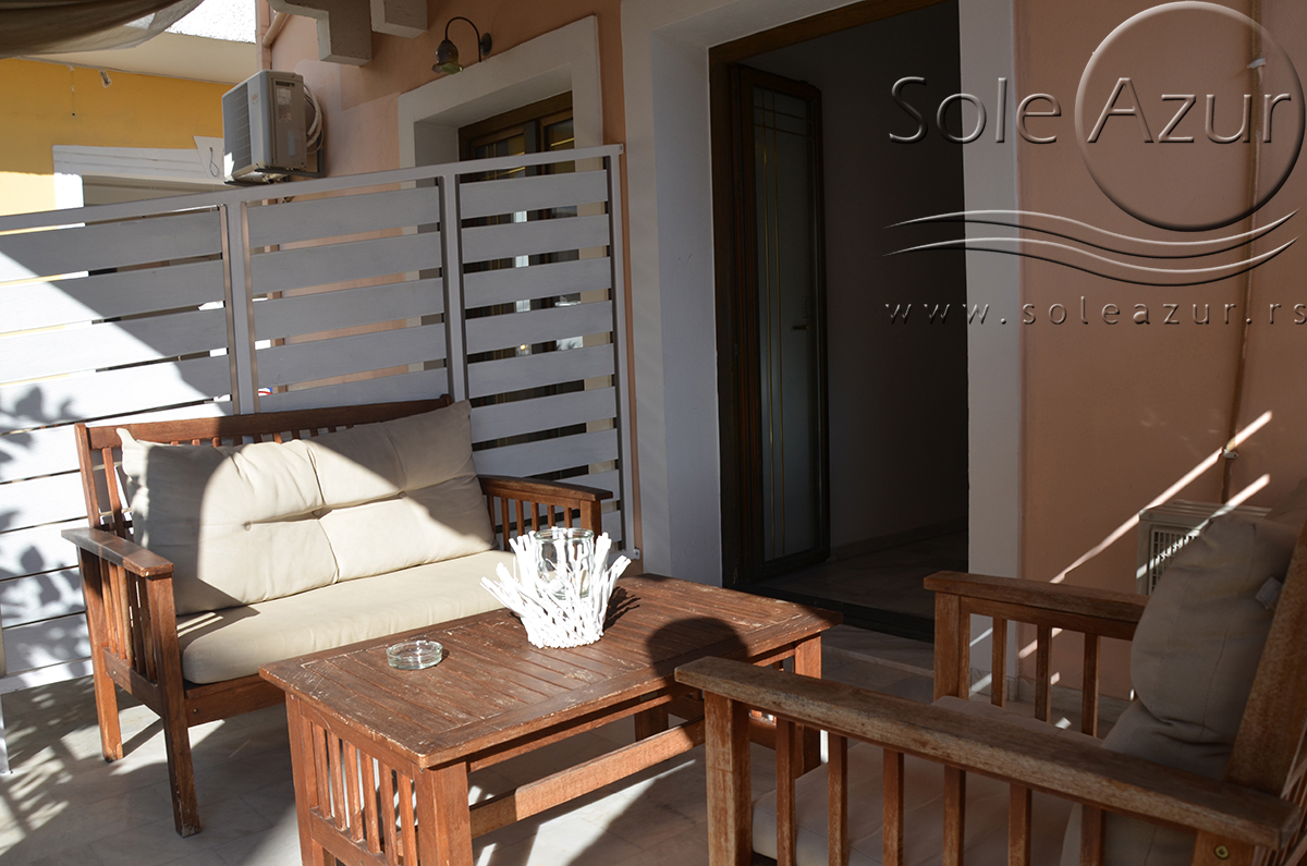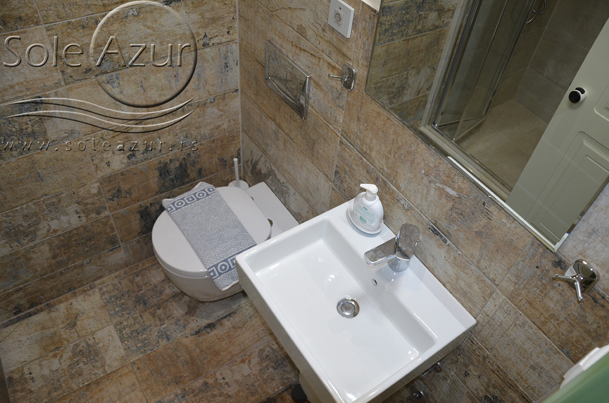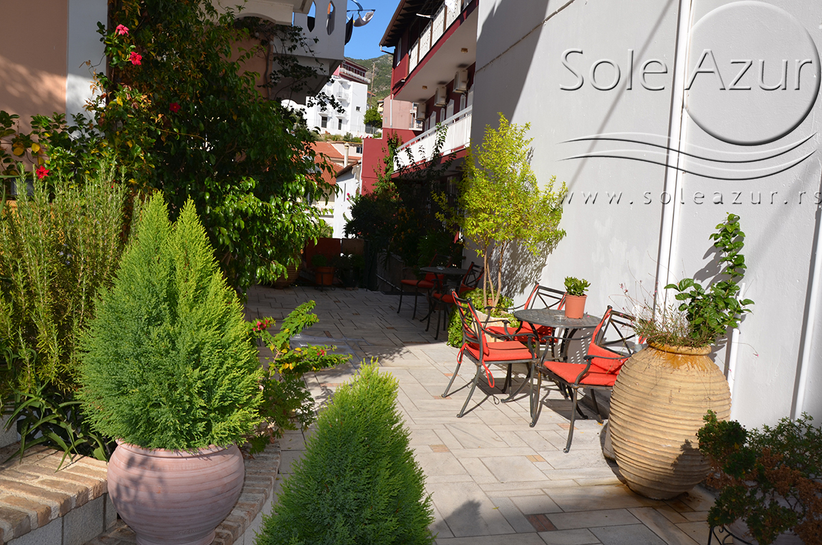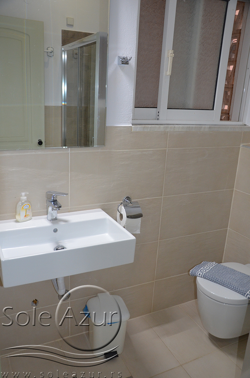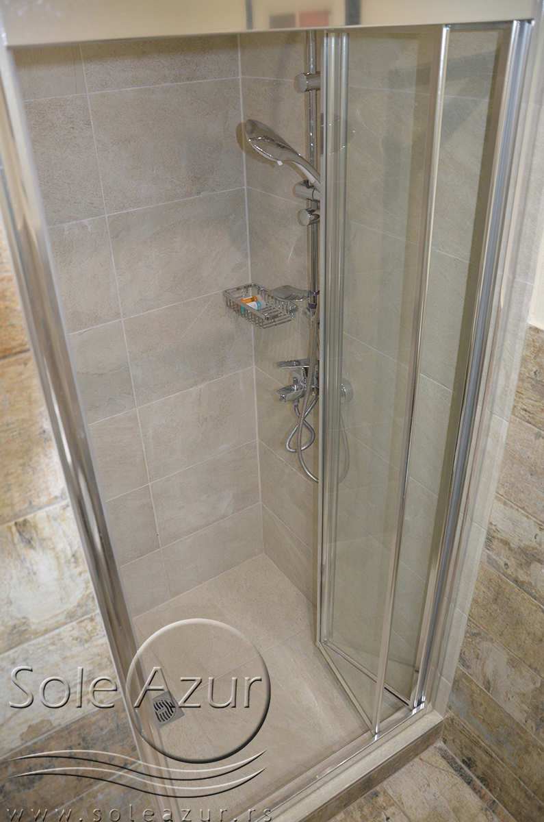 DVOKREVETNI STUDIJI: Dvokrevetni studiji u svom sastavu poseduju ili francuski ležaj dimenzija 190x155cm ili dva singl standardna ležaja dimenzija 190x90cm, dva noćna stočića, stočić sa ogledalom, stočić za prtljag, TV, klima uređaj, orman, SEF (BESPLATNO korišćenje), WI-FI internet konekcija (BESPLATNO korišćenje). Kuhinja se sastoji od ugradnog šporeta sa dve ringle, frižidera sa malom komorom za zamrzavanje, ketlera za grejanje vode, aspiratora, posuđa za dve osobe i stolom za ručavanje sa dve stolice. Kupatila su potpuno renovirana i u svom sastavu poseduju Tuš kabinu, fen za kosu, jedan mali i jedan veliki peškir po osobi.