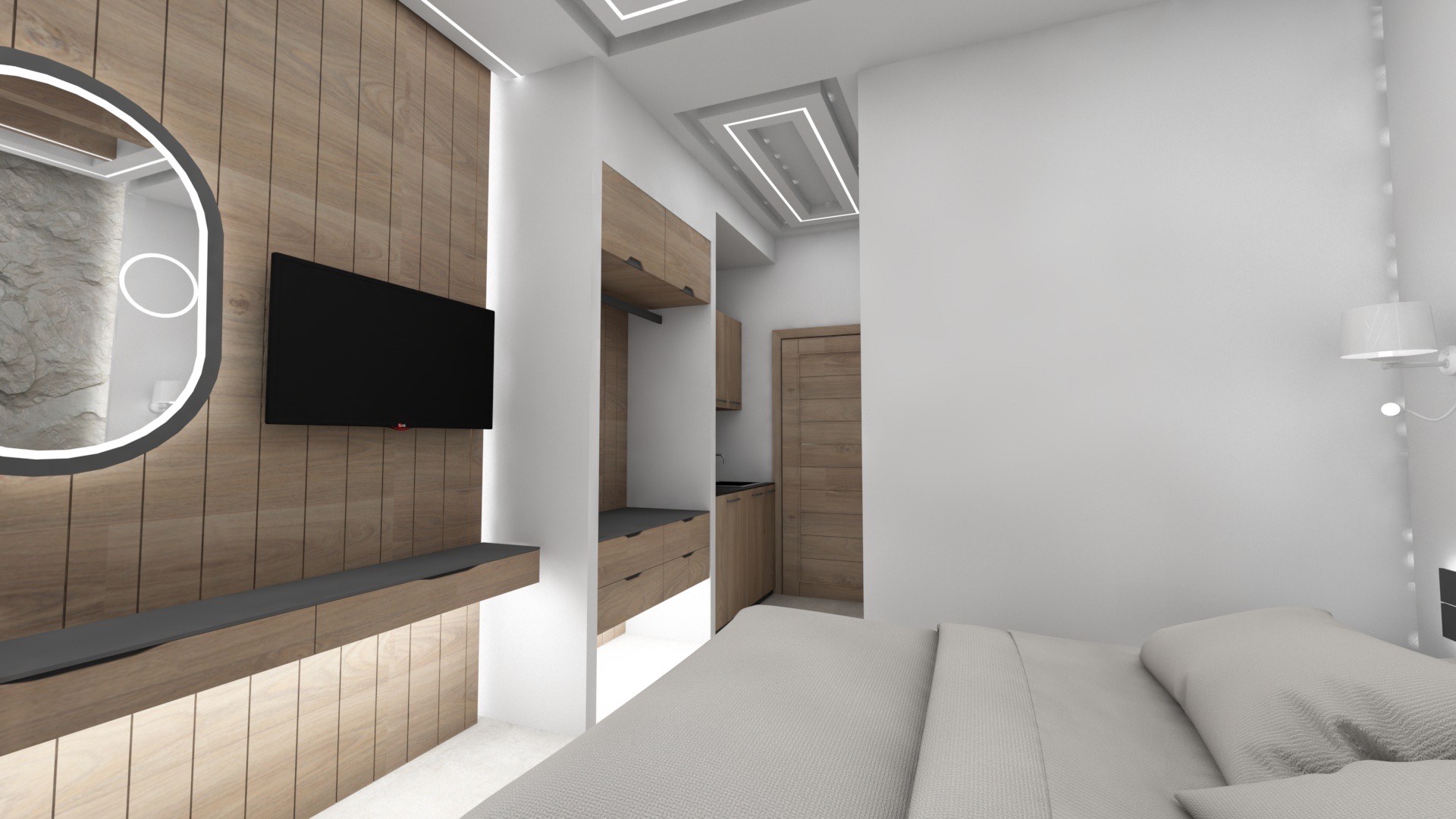 DVOKREVETNI STUDIJI: Studiji se nalaze na prvom i drugom spratu i sastoje se od francuskog ležaja dimenzija 200x140cm ili dva standardna sing ležaja, TV/KAT, klima uređaj (korišćenje je besplatno), noćni stočić, orman, kao i kuhinjski deo koji je u potpunosti opremljen sa posuđem, rešo sa dve ringle, frižider, aspirator. Kupatila imaju tuš/wc.