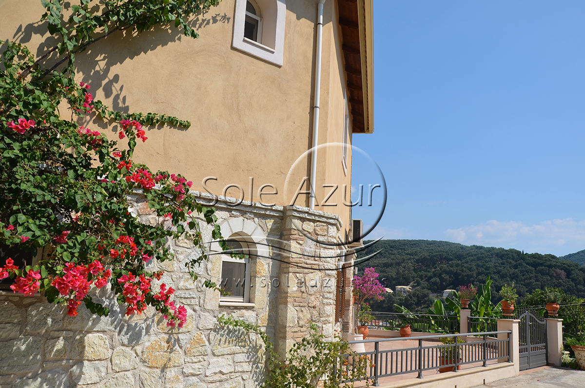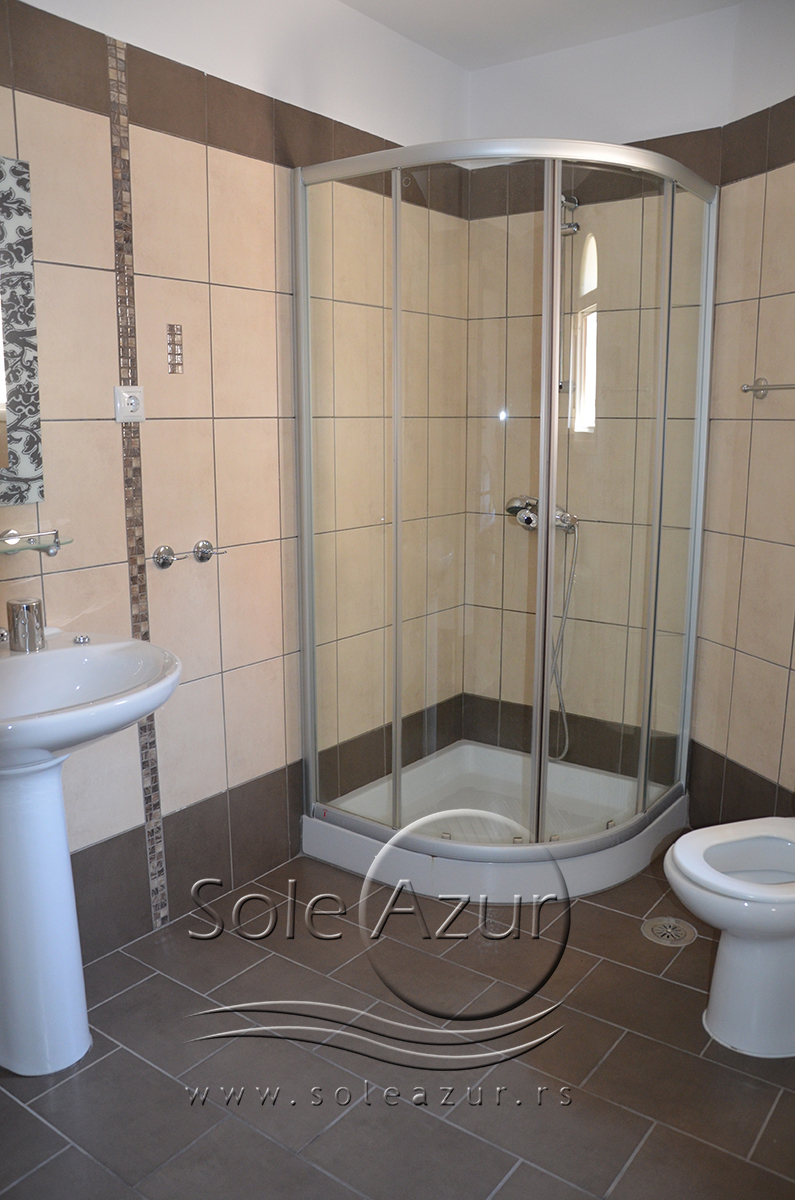 Duplex se sastoji od veoma prostranog dnevnog boravka iz koga se ulazi u dve spavaće sobe, kupatilo, toalet, i iz koga se stepenicama penje na galeriju na kojoj se nalaze dva singl ležaja dimenzija 90x200cm. U sklopu dnevnog boravka je kuhinja koja se sastoji od velikog šporeta sa 4 ringle i rernom za pečenje, velikim kombinovanim frižiderom sa komorom za zamrzavanje i aspiratorom kao i neophodnim posuđem za 6 osoba. Tu je i trpezarijski deo sa velikim stolom sa 6 stolica, TV, klima uređaj (besplatno), kao i jednim kaučem za sedenje. Izlaz na veliku terasu. Prva spavaća soba ima dva spojena singl ležaja od kojih je svaki dimenzija 90x200cm, dva noćna stočića sa lampama, ormarom i dve stolice, klima uređaj (besplatno), izlaz na terasu. Druga spavaća soba ima francuski ležaj dimenzija180x200cm, dva noćna stočića sa dve lampe, klima uređaj (besplatno), ormar i izlaz na terasu. U malom toaletu se nalazi i veš mašina, dok je u kupatilu i tuš kabina.