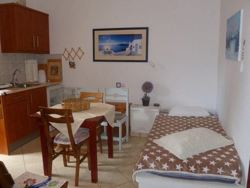 Studio: kupatilo, mini kuhinja opremljena osnovnim posudjem za kratku pripremu laganih obroka uz vremenski minimalno kuvanje, sto i stolice za ručavanje, frižider, klima (uz doplatu), balkon ili terasa.