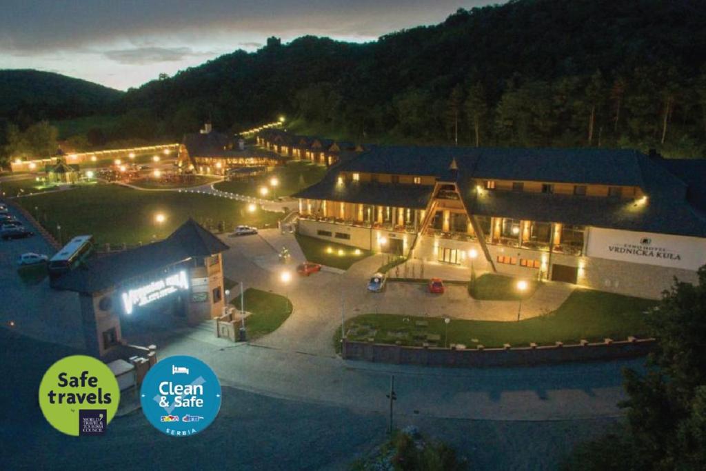 Etno kompleks Vrdnička Kula 4* (Vrdnik) - smešten je u Vrdniku, na 20 km od Novog Sada. Nalazi se na mirnoj lokaciji na obodu Nacionalnog parka Fruška Gora. Gosti mogu da stignu pešice do avantura parka. U ovom hotelu obezbeđen je besplatan WiFi.