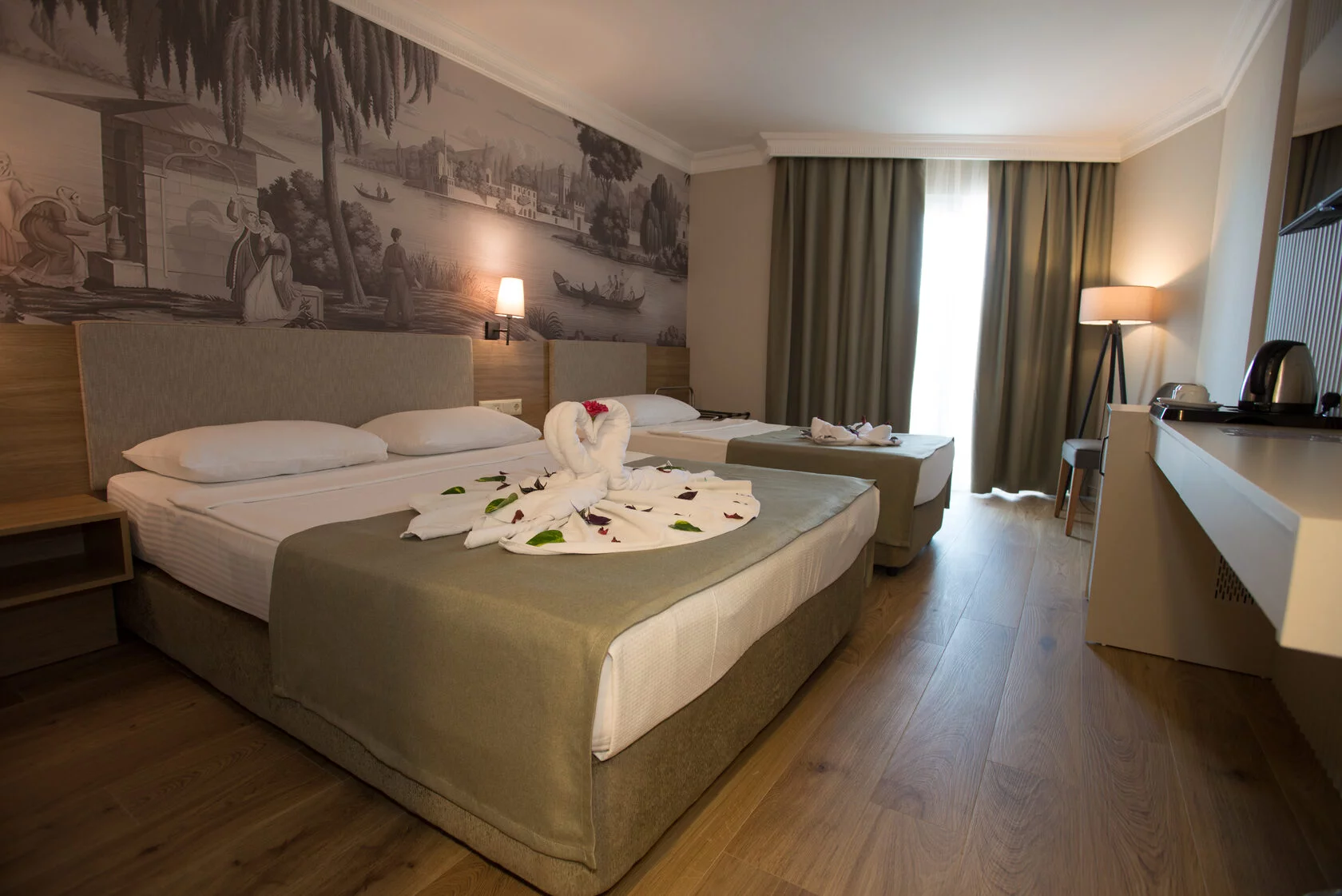 All inclusive – švedski sto za doručak, kasni doručak, ručak, popodenvni kolač, čaj, kafa, večera i ponoćna supa, sladoled pored bazena u određeno vreme, lokalna alkoholna i bezalkoholna pića od 10.00 do 23.00h, sokovi u baru na plaži od 10.00 do 16.00h. U cenu nije uključeno: uvozna pića, sveži voćni sokovi, sladoled, Turska kafa, pića u disko klubu, sva hrana i piće nakon 23:00h.