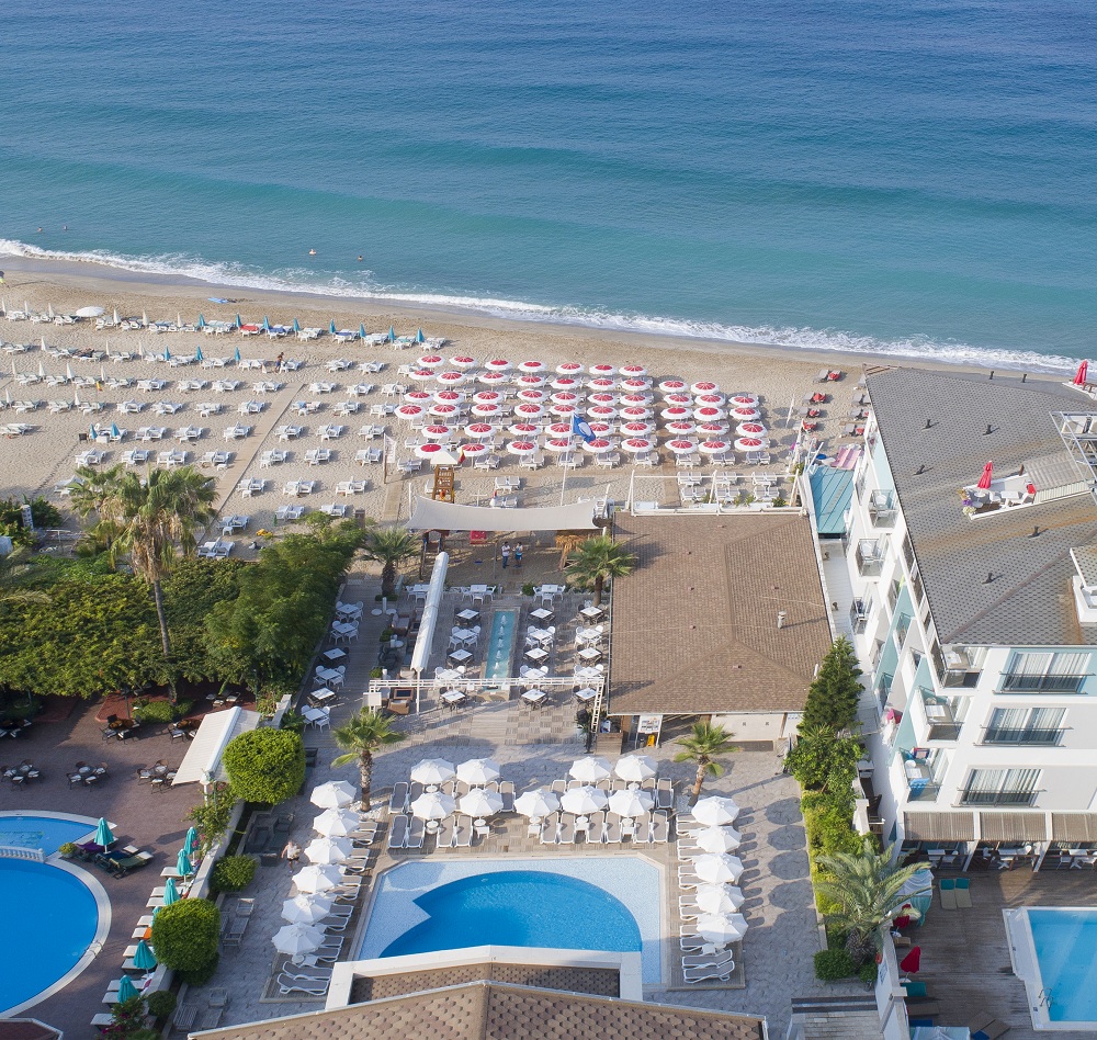 Nalazi se na 120 km od aerodroma u Antaliji, u centru Alanje, na Kleopatrinoj plaži.